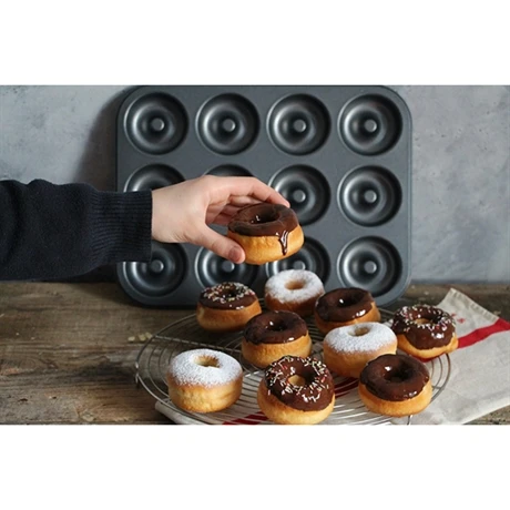 Le plus de ce moule, 12 petits compartiments qui vous permettent même de réaliser des petits savarins pour les plus petits et des babas au rhum pour les plus grands, tous cela en une seule fois ! Le démoulage est également ultra simple grâce à un revêtement antiadhésif, qui protège également l’acier contre l’oxydation.