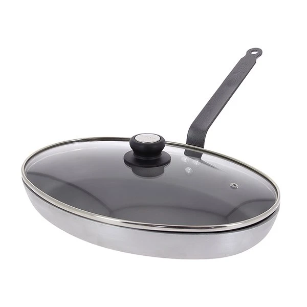 La poêle à poisson ovale choc resto se lave exclusivement à la main, avec une éponge non-abrasive.