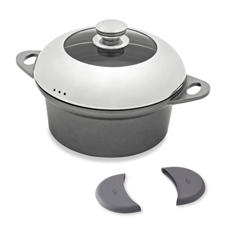 Conseil d’utilisation : utiliser des maniques pour saisir le faitout par les poignées en toute sécurité.