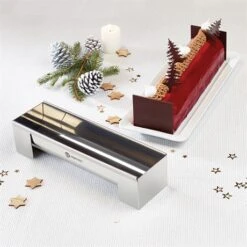 Gouttière à Bûche Démontable En Inox Avec Plaque à Pâtisserie Et Tapis De Cuisson