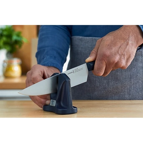 Aiguisez facilement vos couteaux grâce à l’aiguiseur manuel Opinel. Pas besoin d’être un professionnel de l’aiguisage, grâce à son angle auto-ajustable, ses patins siliconés permettent de maintenir votre lame en place. Ses plaquettes en carbure permettent un affûtage de qualité. Très simple d’utilisation, vous pourrez réaffûter efficacement et rapidement vos lames de couteaux.