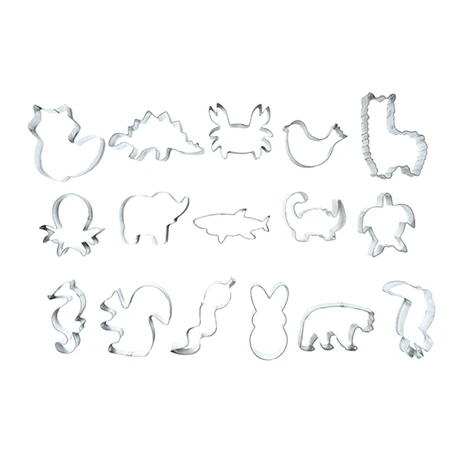 A l’intérieur du seau, vous trouverez 16 découpoirs en fer blanc aptes au contact alimentaire. Tous différents, ils prennent la forme de toucan, lama, éléphant, tortue, écureuil, requin…