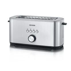 Le grille-pain XXL avec fonction bagel 1 400 W AT2512 de chez Severin est un grille-pain à multi-utilisation. Vous pouvez l’utiliser de bon matin pour vous faire griller des bonnes petites tartines au petit-déjeuner ou pour faire griller vos bagels durant la journée. Avec cette fonction bagel, le gril se fait que d’un seul côté et permet une économie d’énergie. Pour les tartines traditionnelles, le toaster permet un centrage des tranches pour un dorage uniforme des deux côtés. Vous pouvez régler le gril de vos tranches de pain avec les 7 niveaux de dorage. Son corps en inox de qualité supérieure offre une paroi isolante pour ne plus se brûler. Idéal pour 4 tranches de pains XXL, le grille-pain a une fonction décongélation et une touche d’éjection séparée.